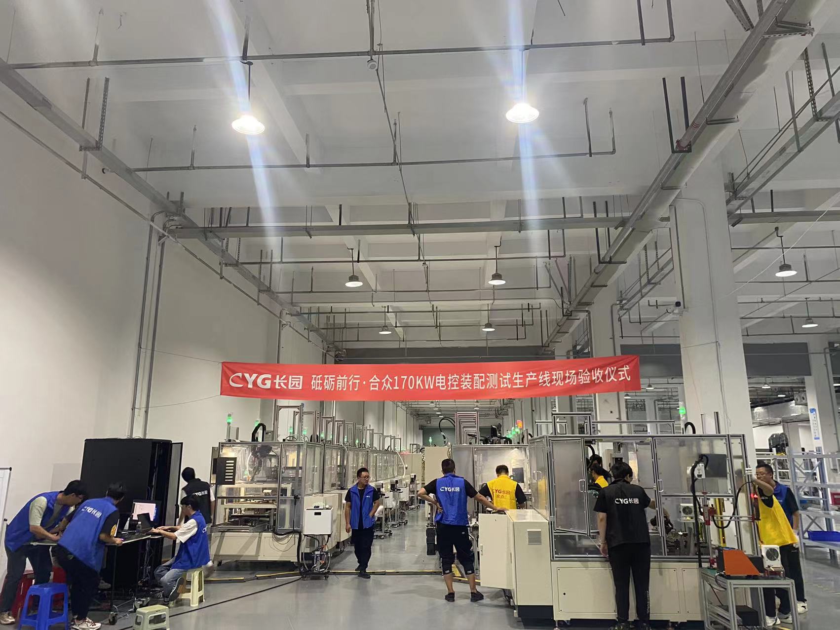 本次验收的项目用于合众新能源有限公司动力与电子公司新工厂电机控制器自动化产线项目。主要用于生产合众170kW和250kW电机控制器产品,整个项目的方案设计、设备采购、制造、现场施工、调试及进度管理、质量管理、现场管理等工作均由达明科技负责。产线年生产能力可达15万台,包含组装线、测试线、返修工位、物料架、线边物料存储、成品临时周转等相关设施。