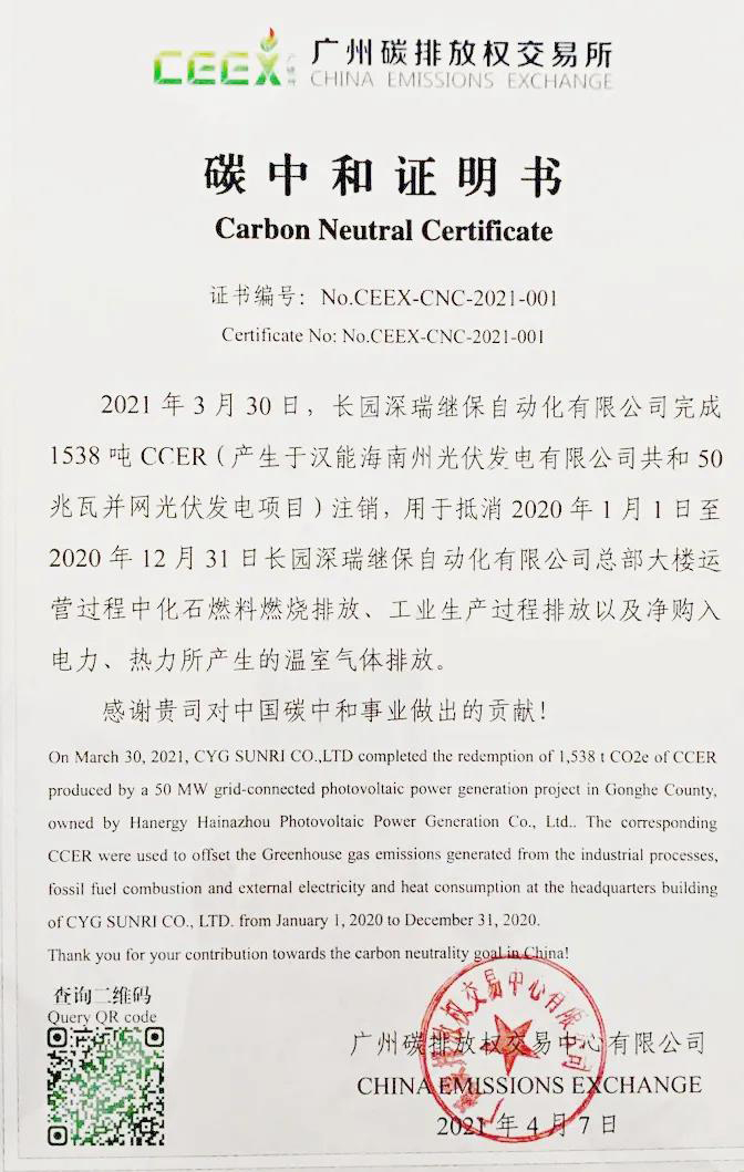 2021年初,为遵循疫情防控、响应“3060碳达峰碳中和”号召,z6.com尊龙深瑞采用线上形式开展产品鉴定会,同时按照《大型活动碳中和实施指南(试行)》的相关要求,通过购买顺昌县“一元碳汇项目”的碳汇减排量,对该次鉴定会的二氧化碳排放量进行碳中和。今后,我们将继续积极中和各类展会、会议等大型活动,践行“零碳会议”理念。