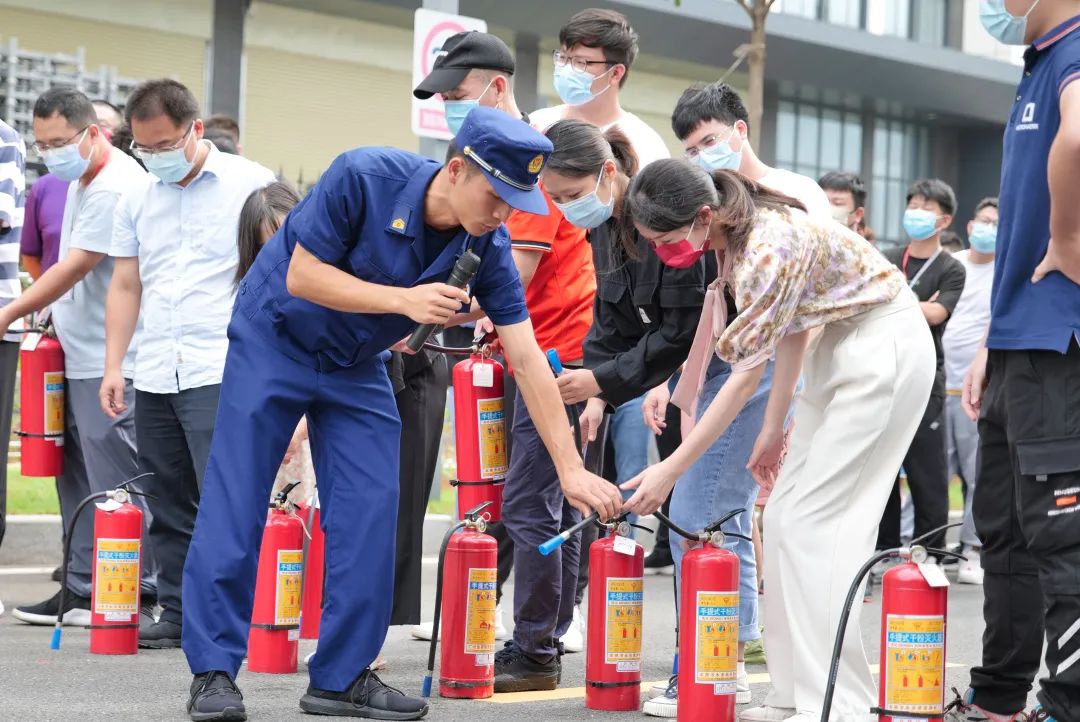 理论培训结束后,消防员现场示范灭火器使用方法,各公司员工热情高涨,纷纷上前参与灭火器实操演练,学习并掌握了灭火器的使用方法,并对如何在有效距离内进行灭火有了实际体验。