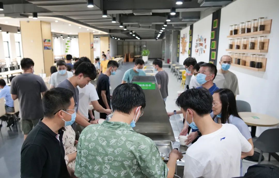 园区食堂贴心准备绿豆汤,为同事们消暑