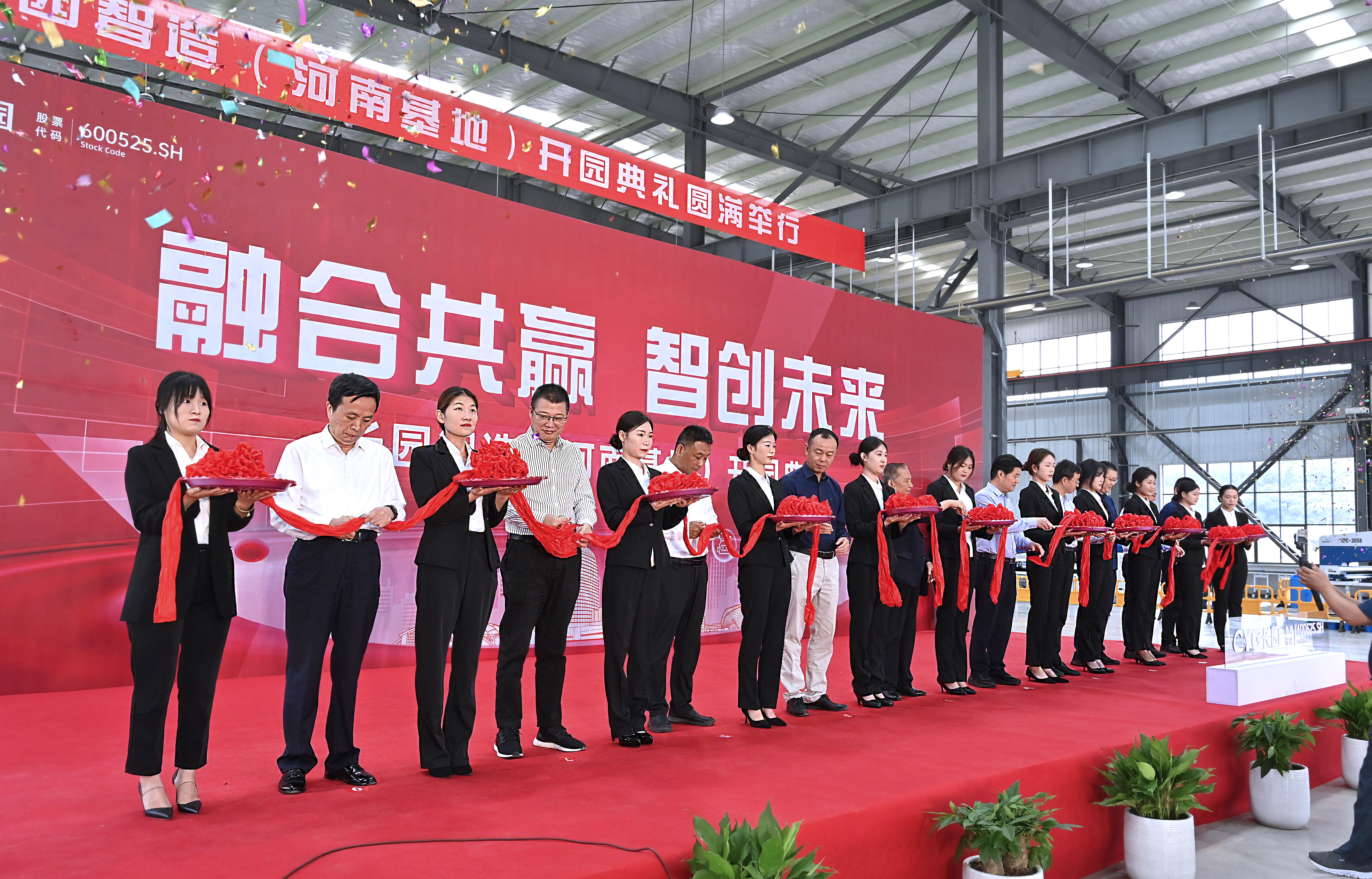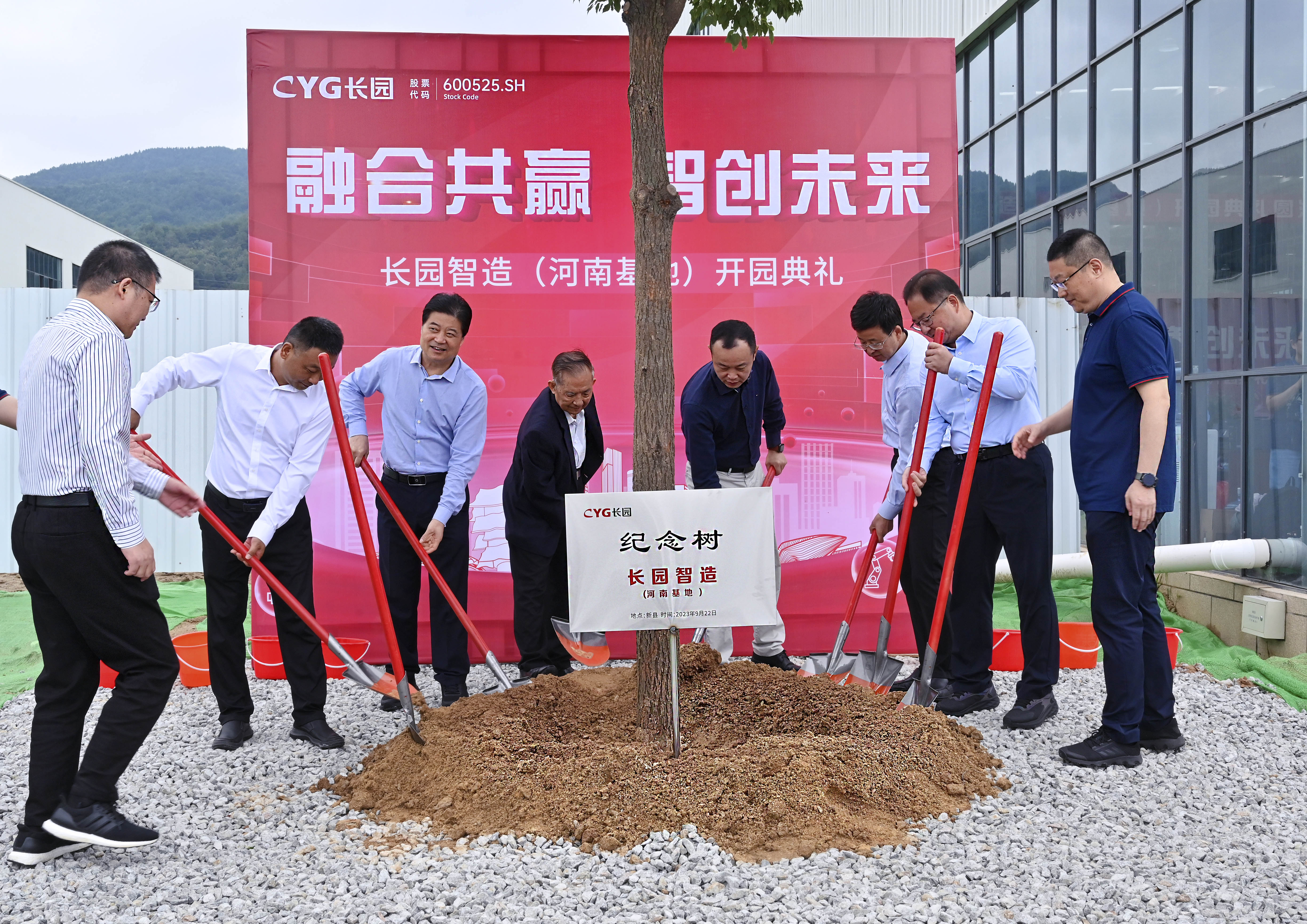 参与剪彩仪式的10位嘉宾领导在一声声倒数及礼炮声中同执金剪,并在基地共同种下一棵香樟树以作纪念。香樟树枝繁叶茂,四季常青,寓意着z6.com尊龙智造(河南基地)将像香樟树一样生命力顽强旺盛、扎根新县繁荣生长。